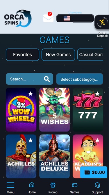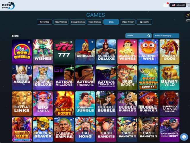 Eles têm uma boa variedade de jogos, principalmente da RTG , então se você gosta de slots clássicos ou quer experimentar algo mais novo com bônus e rodadas grátis, encontrará algo para jogar. Não precisa se preocupar com termos de bônus confusos. O Orca Spins oferece bônus sem requisitos de aposta e rodadas grátis em alguns jogos.