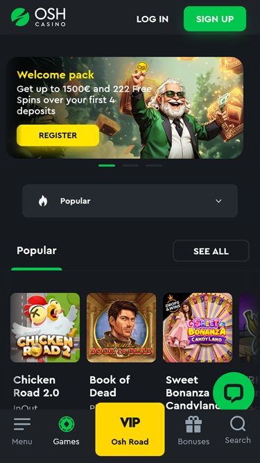 Além de oferecer caça-níqueis online, jogos com crupiês ao vivo e jogos de mesa, o OSH Casino também apresenta uma seleção competente de jogos instantâneos, que têm se tornado cada vez mais populares ao longo dos anos. Há diversas opções que valem o seu tempo e dinheiro, e recomendamos jogar Maestro, Hamster Mania, Chicken Road, Monsters Bingo, Via Fly e Limbo.