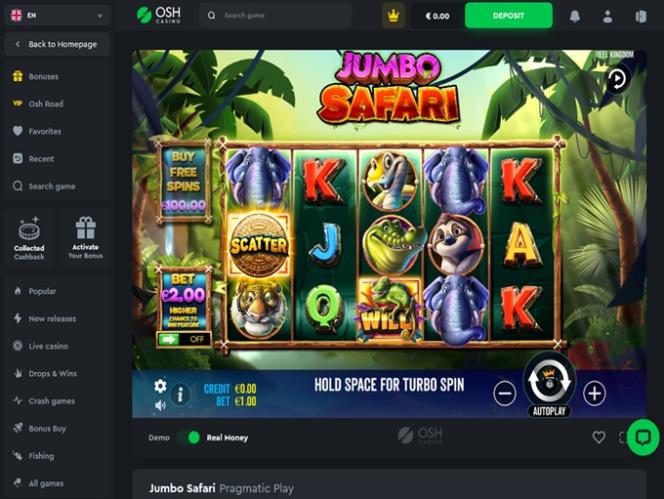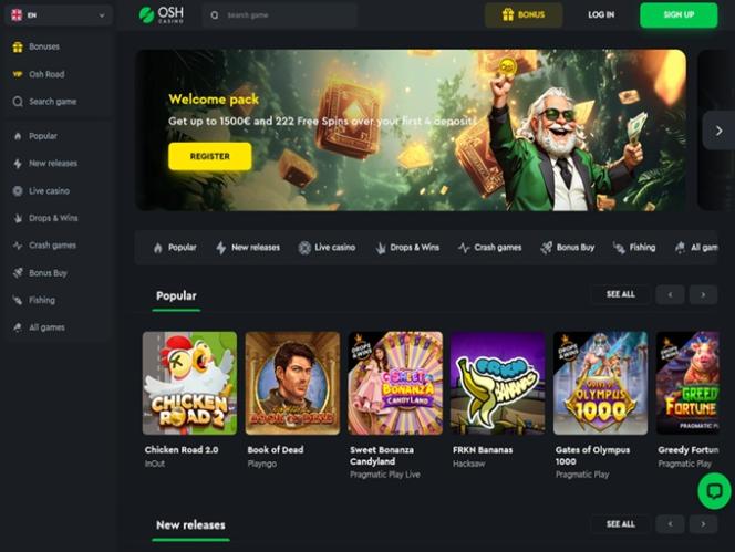 O OSH Casino é um site de jogos de azar moderno que se concentra em fornecer aos jogadores da Finlândia e do Canadá um catálogo abrangente de jogos de cassino, como caça-níqueis online, jogos com crupiês ao vivo, jogos de mesa, jogos de crash e jogos de pesca, além de oferecer diversas promoções e bônus para mantê-los entretidos, bem como a opção de pagamento com criptomoedas para transações mais seguras e rápidas.