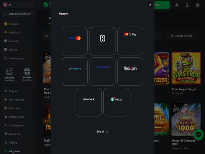 É claro que o ponto forte de qualquer site de jogos de azar moderno reside em sua biblioteca de jogos, e este cassino se esforçou bastante para oferecer aos seus jogadores uma enorme seleção de jogos para explorar. Os jogadores poderão encontrar um vasto catálogo de caça-níqueis com dinheiro real, jogos de mesa, jogos com crupiês ao vivo, jogos de crash e jogos de pesca.