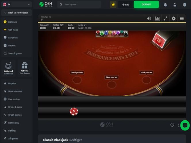 OSH Casino não recebeu o endosso do Wizard of Odds.