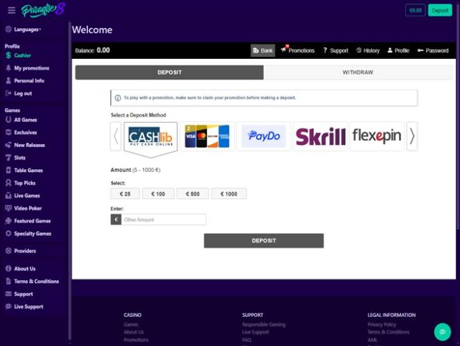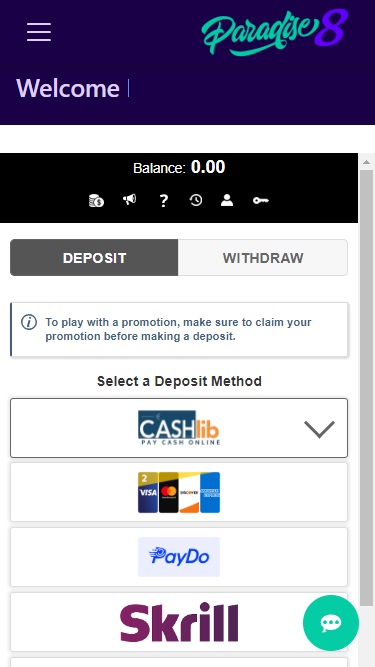Abaixo está uma lista das promoções atualmente oferecidas no Paradise 8 Casino.