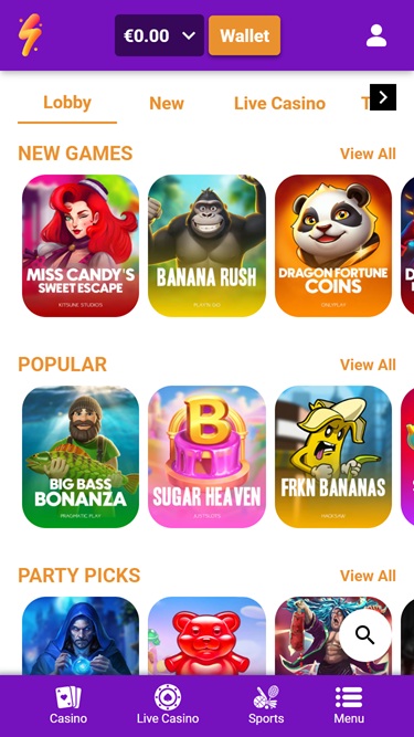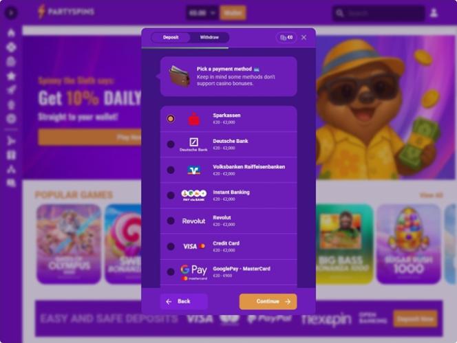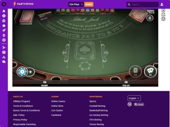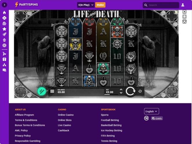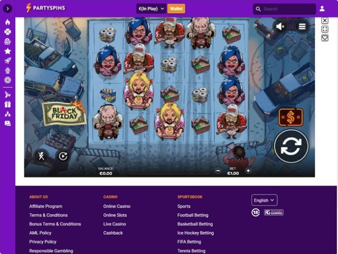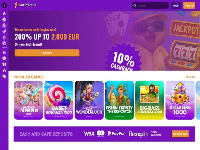 PartySpins é um cassino online voltado principalmente para jogadores da Alemanha e do Canadá. Possui licença e é regulamentado pelo Governo da Ilha Autônoma de Anjouan, União das Comores. Além de jogos de cassino online, este site também oferece opções de apostas esportivas.