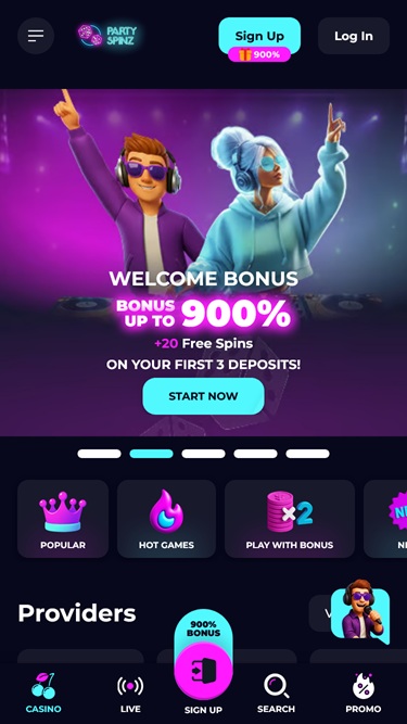 PartySpinz é um cassino online moderno que oferece aos jogadores uma experiência de jogo semelhante à de Las Vegas, no conforto de suas casas, com uma ampla seleção de jogos de cassino, como caça-níqueis com dinheiro real, jogos com crupiês ao vivo, jogos de mesa e jogos de crash. Há também um forte foco em bônus, promoções, eventos e torneios online.