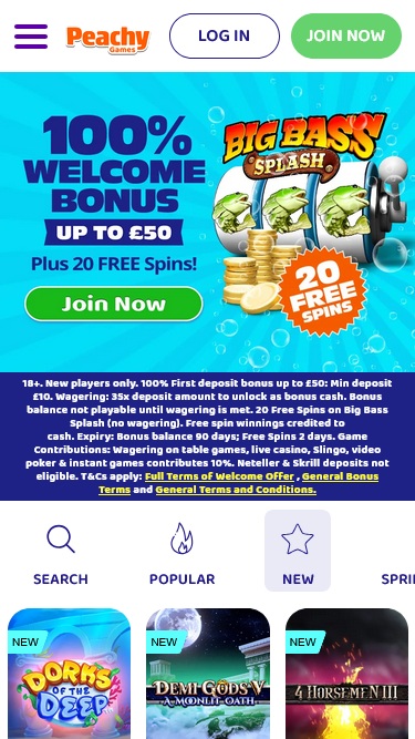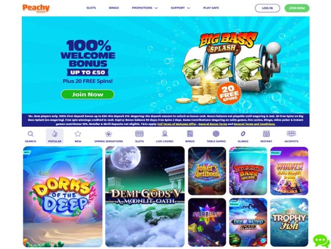 A plataforma de jogos de azar Peachy Games pode parecer um pouco antiquada, mas seu design é vibrante, prendendo a atenção dos jogadores e colocando os jogos em destaque. E, o mais importante, possui uma simplicidade prática e tranquilizadora que apreciamos bastante.