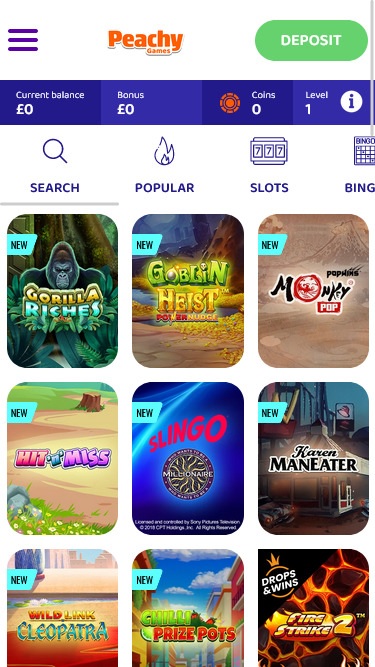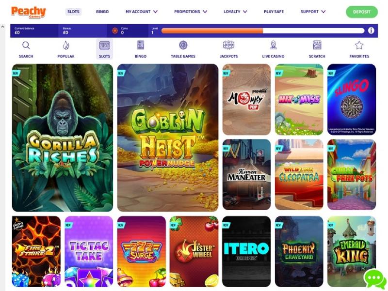 Na Peachy Games, os apostadores podem jogar muitos "jogos instantâneos", como Gorilla Go Wilder, Tomatina Bingo, Gremlins Time to Tumble, Squeaky Blinders, The Perfect Scratch, Love is All You Need, Pachinko, The Incredible Balloon Machine, SpinLotto...