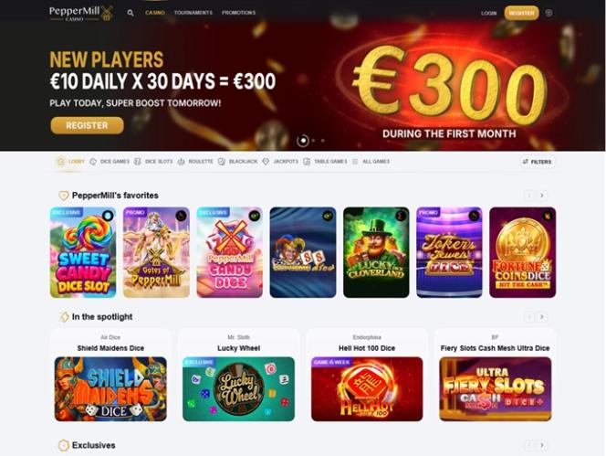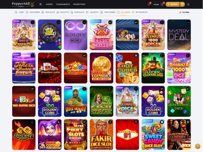 Ao decidir se juntar ao PepperMill Casino, você poderá jogar alguns ótimos títulos de caça-níqueis online, como Book of Ra Dice, Mega Wheels, Starliner, Mega Spinner, 88 Mystery, 20 Dice Roosters, Hot Cubes, Mystery Deal, Supreme Dice, Extra Joker e muitos outros.
