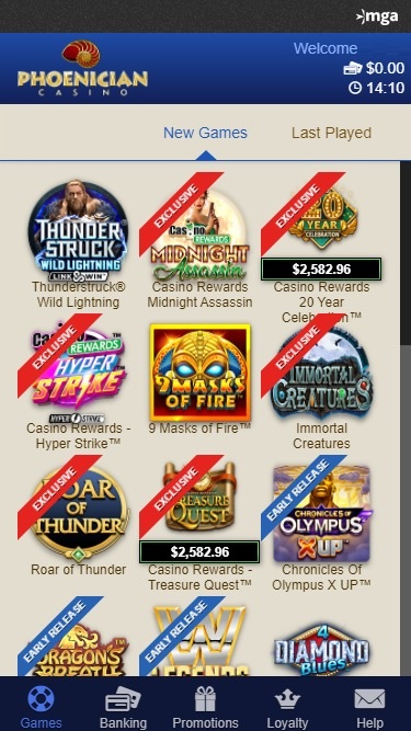 Phoenician Casino, outro cassino da Microgaming. Li aqui que este cassino também é membro do grupo de recompensas do cassino. Não sabia disso. Na verdade, quando me registrei, ele não era membro do CRG. Agora que sabemos disso, além do software da Microgaming que o cassino usa, você será bem cuidado pelo CRG. Todas as apostas que você fizer terão o equivalente a pontos VIP. Você pode até combinar todos os seus pontos VIP de todos os cassinos do CRG e jogar no cassino que quiser. Boa sorte!
