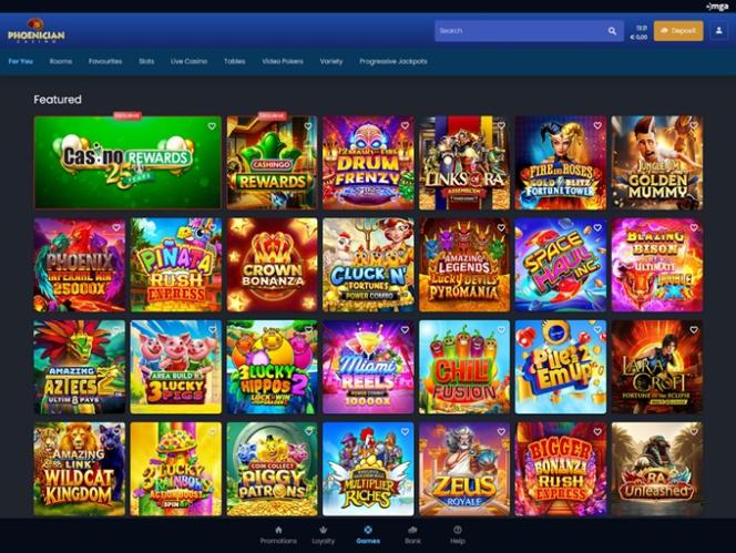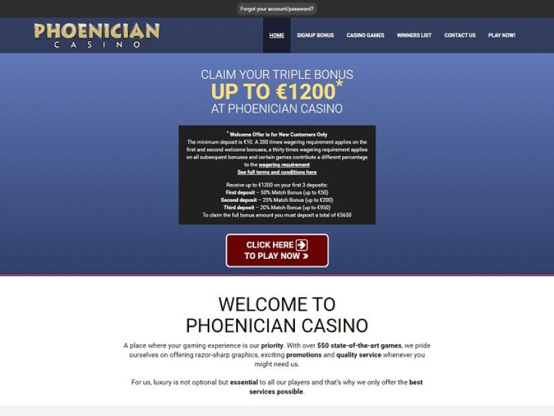 Os fenícios existem online desde que me lembro, progredindo por vários softwares diferentes ao longo dos anos, mas agora operando na sempre popular plataforma Microgaming. Infelizmente, eles também foram comprados pelo grupo Casino Rewards em algum momento, há muito tempo, então você pode esperar suas táticas habituais de encher sua caixa de entrada com spam e talvez até ligar para o seu celular no meio da noite para tentar lhe vender um bônus. Não, obrigado!