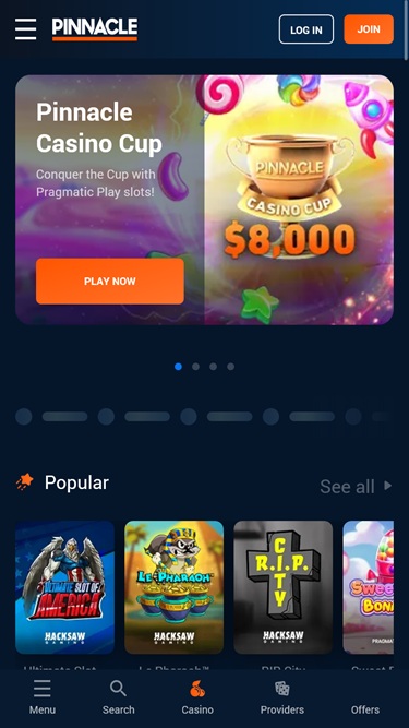 O Pinnacle Sports Casino é um site de apostas online que faz parte do site de apostas esportivas Pinnacle. Inaugurado em 1998, o Pinnacle Sports Casino pertence e é operado pela Ragnarok Corporation NV, sendo conhecido por oferecer uma experiência de jogo estável, embora um pouco datada.Informações do cassino