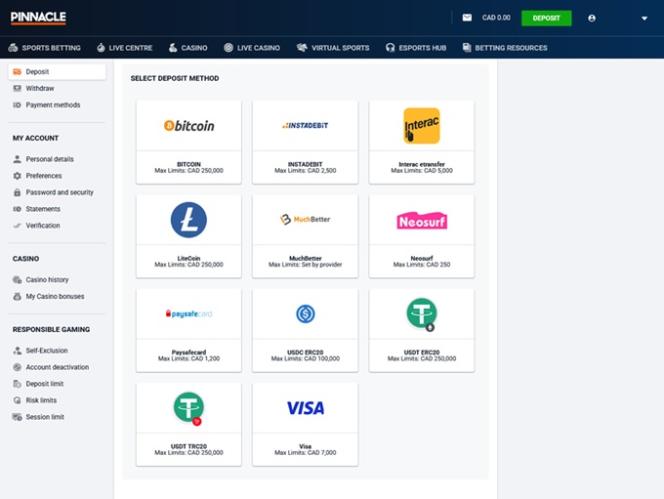 No Pinnacle Casino, é muito fácil recarregar seu saldo e sacar seus ganhos com os diversos métodos de pagamento disponíveis. Os jogadores podem escolher entre métodos de pagamento populares como Visa, Mastercard, Skrill... A única desvantagem é que há apenas um saque gratuito por mês, sendo que cada saque é descontado de uma comissão.