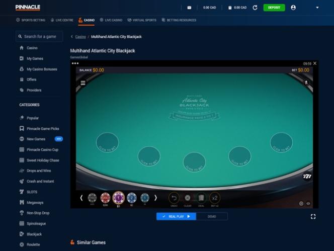 O Pinnacle Sports Casino é operado pela Microgaming, 1x2gaming, Ezugi, Play'n GO, playson, Relax Gaming, Wazdan, Booming Games, Pragmatic Play, Spinomenal, Red Rake Gaming, Fantasma Games, Triple Edge Studios, Northern Lights Gaming, Evoplay, Stormcraft Studios, Switch Studios, All41 Studios, Gluck Games, Gameburger Studios, Pulse 8 Studios, Neon Valley Studios, Spearhead Studios, SpinPlay Games, SmartSoft Gaming, Buck Stakes Entertainment, Creedroomz, Games Global, Amusnet Interactive, EveryMatrix, Iron Dog Studio, Foxium, Just For The Win, PearFiction Studios, Wild Streak Gaming, Slingshot Studios, Fortune Factory Studios, 4ThePlayer, AvatarUX, Gamevy, Crazy Tooth Studio, ReelPlay, Alchemy Gaming, Vibra Gaming, Snowborn Games, Hacksaw Gaming, Gold Coin Studios, Half Pixel Studios, Aurum Signature Studios, Onlyplay, Armadillo Studios, Area Vegas, GoldenRace, Aviatrix, Kiron, Wishbone Games, Spribe, Gaming Corps, HammerTime Games, Nailed It! Games, Neko Games, Reel Kingdom, Oros Gaming, Galaxsys, VoltEnt and Kitsune Studios , que oferece aos clientes a oportunidade de jogar uma variedade de jogos diretamente pelo navegador da web. Um site para dispositivos móveis também está disponível para quem deseja jogar em seus smartphones e tablets.Blackjack