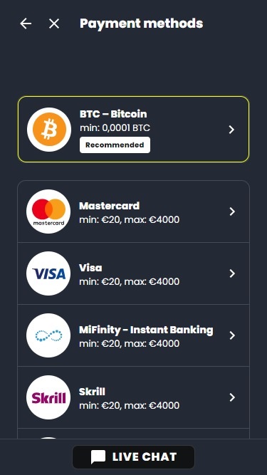 A coleção completa de jogos está dividida em duas categorias principais: Cassino e Cassino ao Vivo, ambas com a tecnologia de alguns dos fornecedores de software de cassino mais populares. Vamos mencionar apenas alguns deles: NetEnt, Relax Gaming, PlayTech, Yggdrasil...