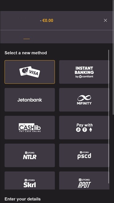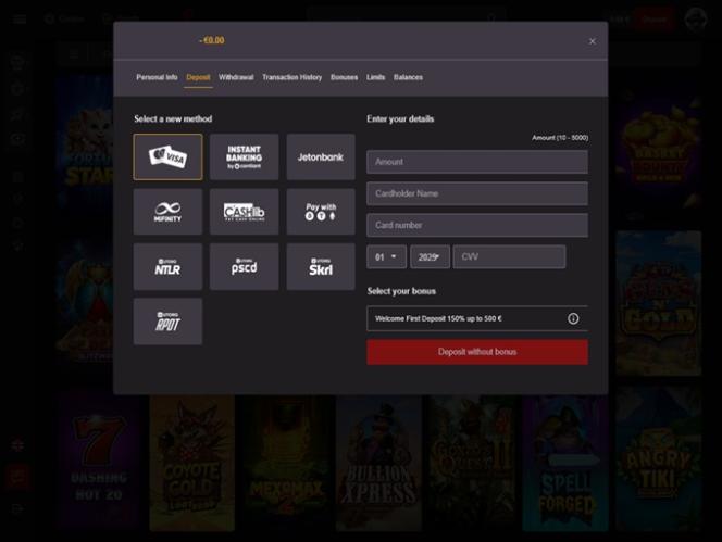 Depositar fundos em sua conta também é fácil, com o botão de depósito no canto superior direito levando você ao menu, onde você pode escolher entre diversos métodos de pagamento . Como já mencionamos, o cassino aceita criptomoedas como Tether , Bitcoin, Ripple, Tron e muitas outras, então os entusiastas de criptomoedas também terão algo interessante para aproveitar!