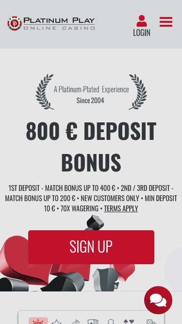 O PlatinumPlay, para mim, é um site de cassino muito amigável para jogadores. O site é projetado de forma relaxante e com um processo de inscrição muito fácil. O site oferece uma grande variedade de jogos de um dos meus provedores favoritos, a Microgaming. Eu, pessoalmente, adoro o site e seu programa de bônus, que começa no primeiro depósito.