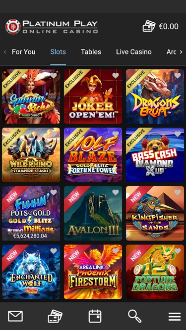 O Platinum Play Casino é alimentado pela Microgaming, Net Entertainment, Evolution Gaming, Pragmatic Play, Red Tiger Gaming, Triple Edge Studios, Northern Lights Gaming, Stormcraft Studios, Switch Studios, All41 Studios, Gameburger Studios, Pulse 8 Studios, Neon Valley Studios, SpinPlay Games, Real Dealer Studios, GONG Gaming, On Air Entertainment, Buck Stakes Entertainment, Games Global, Old Skool Studios, Foxium, Just For The Win, PearFiction Studios, Wild Streak Gaming, Slingshot Studios, Fortune Factory Studios, Crazy Tooth Studio, Alchemy Gaming, Snowborn Games, Gold Coin Studios, Half Pixel Studios, Eurostar Studios, Aurum Signature Studios, Area Vegas, Wishbone Games, Circular Arrow, HammerTime Games, Nailed It! Games, Neko Games, Reel Kingdom and Oros Gaming , que oferece centenas de jogos, incluindo slots, jogos de mesa e vídeo pôquer. O cassino está disponível através de uma plataforma online e também por um software para download. Ambos os métodos de jogo são praticamente idênticos, e os jogadores provavelmente notarão apenas uma ou outra diferença na imagem do layout. O jogo em dispositivos móveis também é compatível com o site mobile, permitindo jogar em smartphones e tablets.