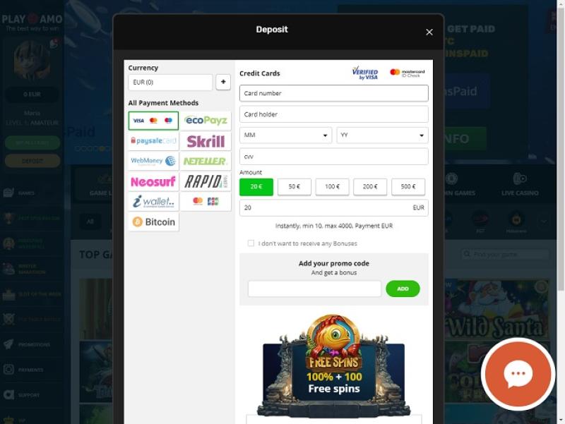 Abaixo está uma lista das promoções atualmente oferecidas no Playamo Casino.