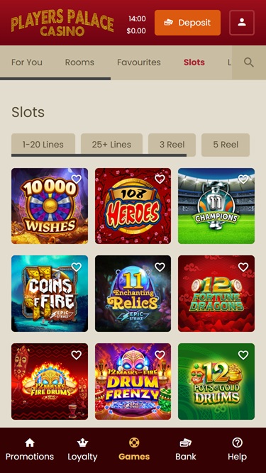 O Players Palace Casino é um cassino online que abriu suas portas em 2006 e é um dos vinte cassinos online pertencentes à operadora Casino Rewards. O cassino é conhecido por sua vasta biblioteca de jogos, excelente equipe de suporte e ótima oferta de jogo grátis para novos jogadores.Informações do cassino
