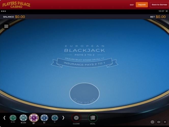 O Players Palace Casino é alimentado por Microgaming, Evolution Gaming, Rabcat, Pragmatic Play, Triple Edge Studios, Northern Lights Gaming, Stormcraft Studios, All41 Studios, Gameburger Studios, Pulse 8 Studios, Neon Valley Studios, SpinPlay Games, Real Dealer Studios, GONG Gaming, On Air Entertainment, Buck Stakes Entertainment, Games Global, Old Skool Studios, Foxium, Just For The Win, PearFiction Studios, Slingshot Studios, Fortune Factory Studios, Crazy Tooth Studio, Alchemy Gaming, Snowborn Games, Gold Coin Studios, Half Pixel Studios, Eurostar Studios and Aurum Signature Studios , que oferece aos jogadores uma biblioteca de jogos com mais de 400 títulos. O cassino está disponível tanto por meio de um software para download quanto por uma plataforma online. Os jogadores que desejam participar dos jogos do cassino em smartphones e tablets podem fazê-lo através do site móvel do Players Palace.Blackjack