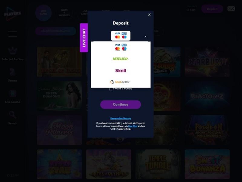 O Playerz Casino aceita diversos métodos de pagamento padrão, como cartões de crédito, carteiras eletrônicas e transações bancárias. No momento em que esta análise foi escrita, os métodos de pagamento disponíveis também incluem opções atraentes para determinados mercados, como o RuPay para jogadores de cassino online da Índia .