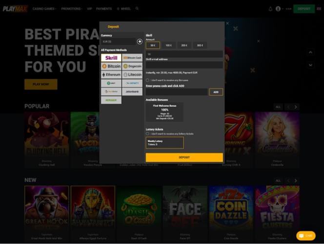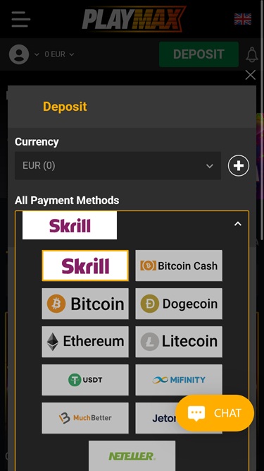 A Playmax também oferece uma ampla variedade de métodos de pagamento para depósitos e saques. Com opções como Visa e Mastercard, carteiras eletrônicas como Skrill e Neteller e, claro, criptomoedas, você certamente encontrará uma que atenda às suas preferências.