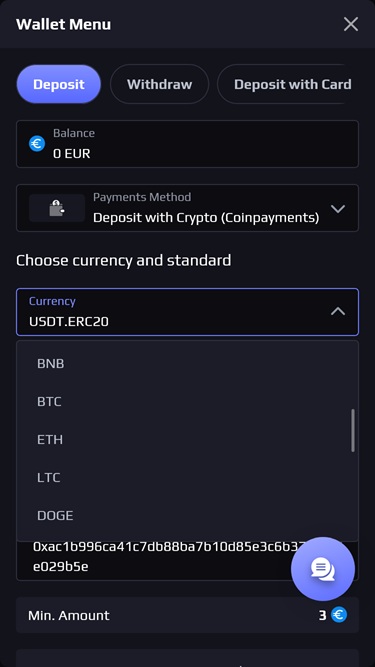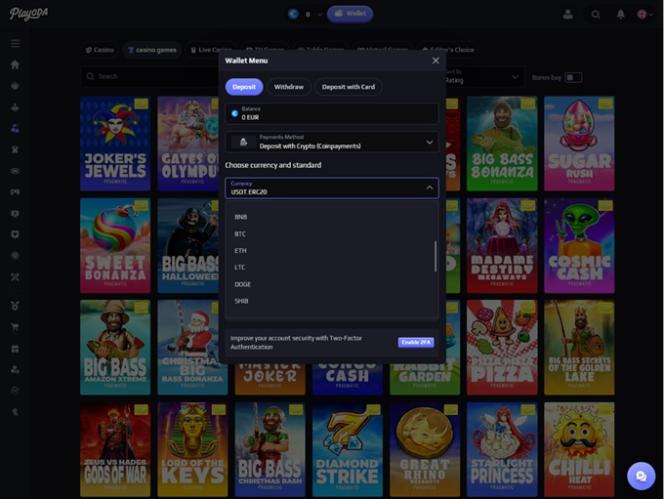 O cassino aceita tanto moedas fiduciárias quanto criptomoedas.