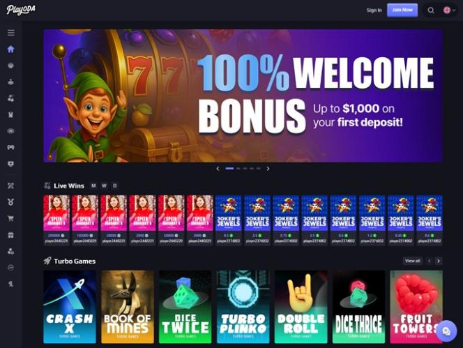 Fundado em 2025, o Playoda é um cassino online que recebe jogadores do Canadá, Nova Zelândia e Irlanda. A marca oferece uma ampla variedade de jogos de cassino, incluindo centenas de caça-níqueis online, jogos com crupiês ao vivo, jogos de mesa, jogos de crash e diversas opções de apostas esportivas. Os jogadores também poderão aproveitar a oferta de boas-vindas e vários programas de fidelidade da marca.