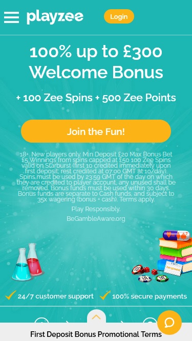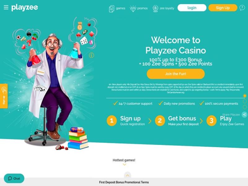 O cassino Playzee é um site de apostas online lançado em 2018 pela White Hat Gaming Limited. O site brinca com a figura de um químico brilhante chamado Dr. Zeegmund, que consegue criar ótimas promoções para os jogadores. O Playzee é um excelente cassino online, pois oferece uma vasta biblioteca de jogos, pagamentos quase instantâneos e termos de bônus razoáveis.