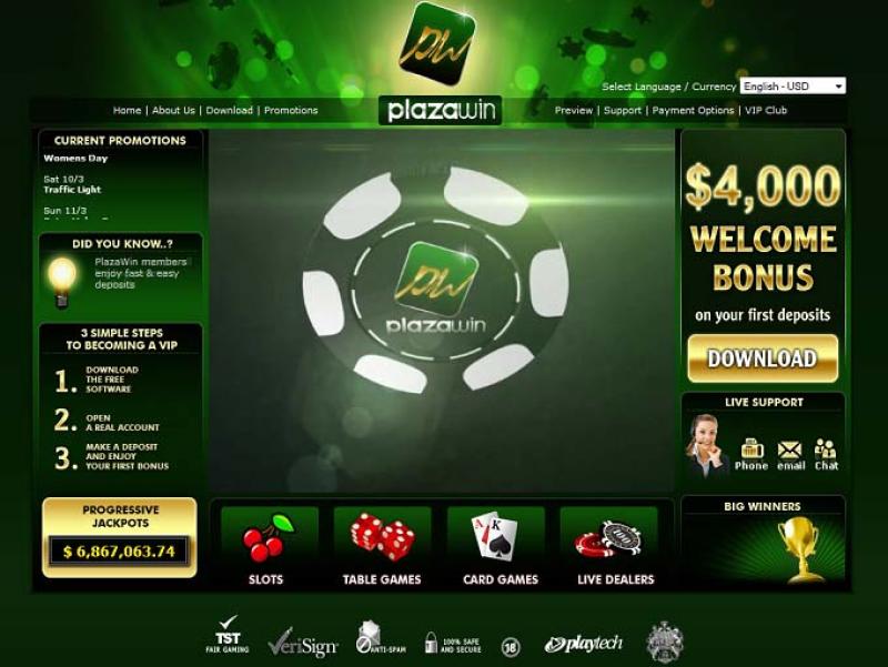 O software Playtech and Spin3 fornece a plataforma de jogos para o PlazaWin. O software Spin3 é exclusivo para o Cassino Móvel. O selo TST Fair Gaming, responsável pela auditoria do Gerador de Números Aleatórios (RNG), não possui um relatório publicado e, portanto, não se sabe ao certo se e quando foi testado. As opções de Download e Jogo Instantâneo levam diretamente ao lobby de jogos.