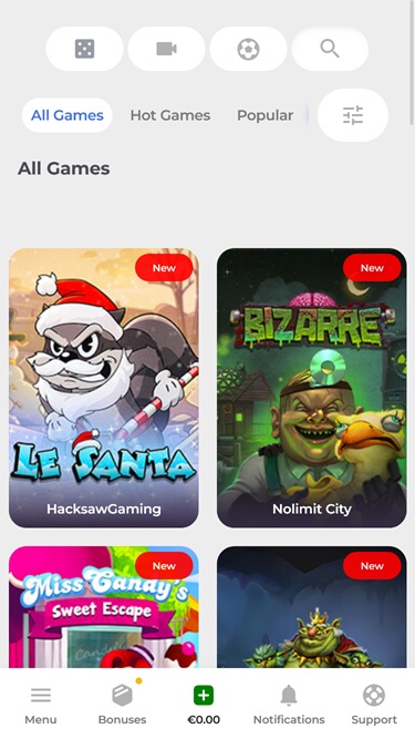 O site do cassino é claro e minimalista, projetado para atrair jogadores que apreciam uma interface simples e funcional, otimizada para todos os dispositivos, sejam eles computadores ou celulares. Absolutamente nada pode desviar a atenção dos jogadores dos jogos.