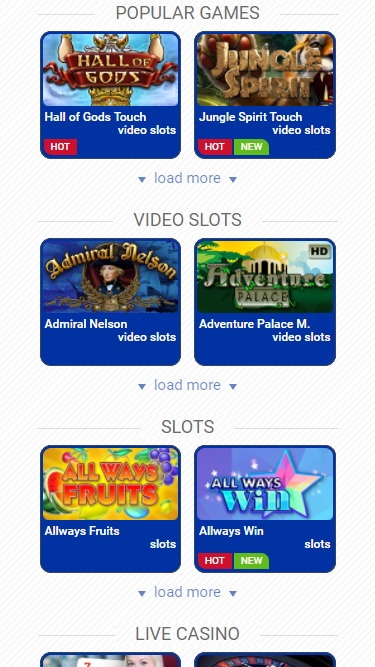 O Dutch Polder Casino, o All British Casino, o All Irish Casino, o All Australian Casino e o Adler Casino (que é o cassino para nós, alemães) são quase idênticos. Acho que o layout é muito bem estruturado. Você definitivamente encontrará o que procura imediatamente.