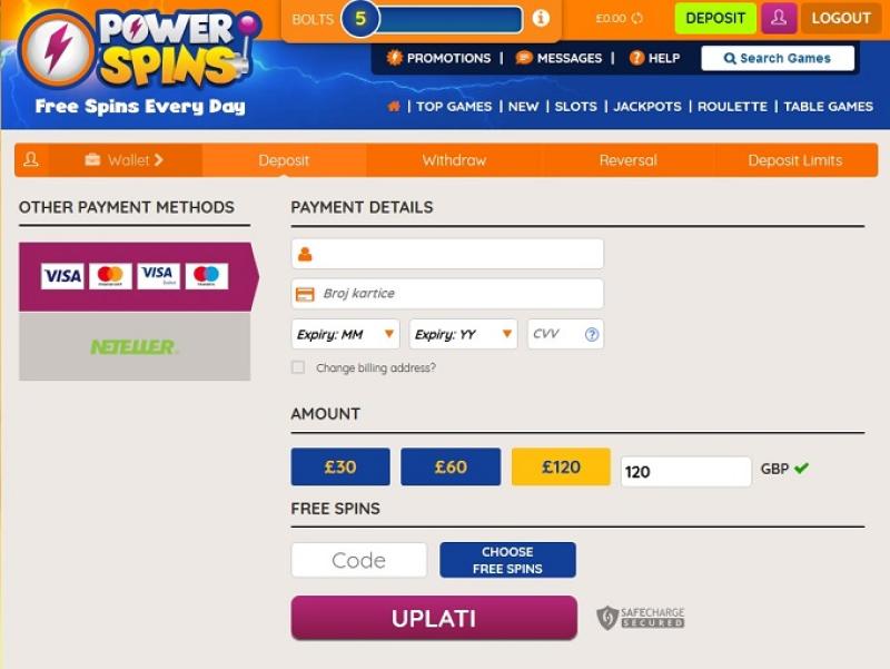 O Power Spins é fornecido pela Microgaming, Net Entertainment, Playtech, 1x2gaming, Big Time Gaming, EYECON, Play'n GO, Quickspin, Rabcat, Realistic Games, Red Tiger Gaming, IGT, Gameburger Studios, Shuffle Master, Games Global, Ash Gaming, Bally Technologies, Blueprint Gaming, Leander Games, WMS, Gaming Realms, SG Interactive, SUNfox Games and CORE Gaming e os jogos do cassino estão disponíveis através de uma plataforma de jogo instantâneo baseada na web, que carrega diretamente pelo seu navegador de internet favorito. O site também é compatível com dispositivos móveis, o que significa que você pode jogar pelo seu smartphone ou tablet.