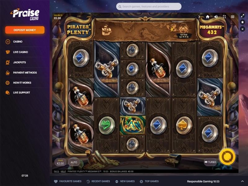 Com a tecnologia da SoftSwiss , fornecedora e agregadora de soluções completas de iGaming, o Praise Casino possui um portfólio com mais de 4.000 títulos em sua biblioteca, que inclui desde veteranos consagrados na indústria, como NetEnt, Play'n GO e Yggdrasil, até estúdios em desenvolvimento com tecnologias inovadoras para slots e gráficos de última geração, como Quickspin , iSoftBet, Red Tiger, ELK e outros.