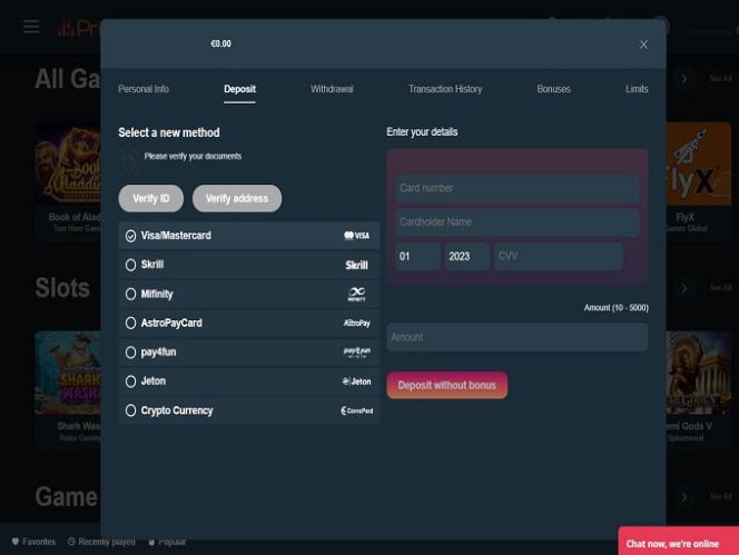PrimeBetz Casino não permite jogadores de Ohio