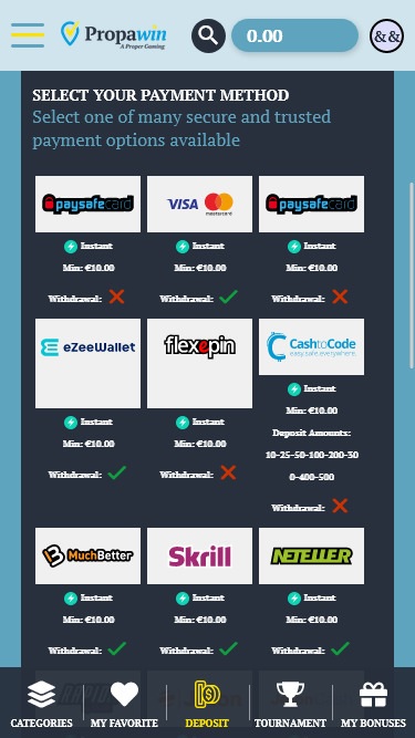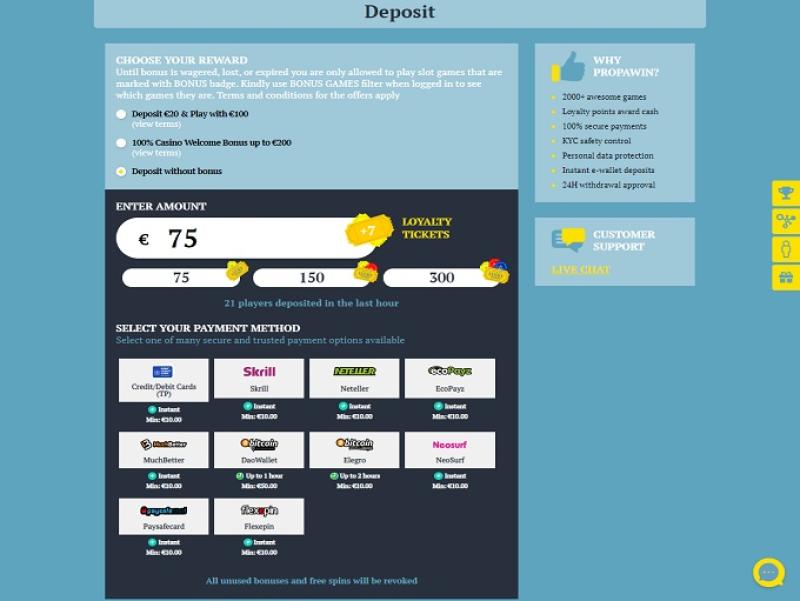 Atualmente, o PropaWin Casino não oferece pontos de fidelidade.