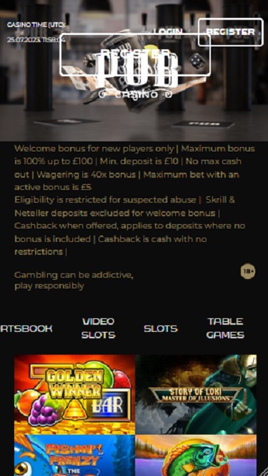 Com os caça-níqueis online sendo a opção de jogo mais popular para muitos, o PUB Casino oferece aos seus jogadores uma fantástica seleção de títulos para escolher. Entre os jogos mais populares estão Golden Winner, Story of Loki Masters of Illusions, Fishing Frenzy The Big Splash, Big Catch Bass Fishing, Eye of Horus the Golden Tablet Megaways e Wish Master Megaways.