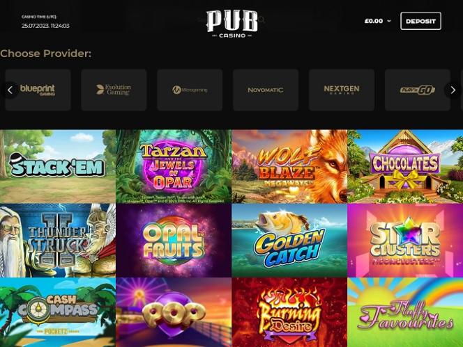 Nesta seção de análises, examinaremos os tipos de provedores de software e jogos que você pode esperar encontrar no PUB Casino. Para nossa grata surpresa, há uma vasta seleção de entretenimento de jogos de azar para você escolher. Definitivamente, há algo para todos os gostos, independentemente do tipo de jogador que você seja.