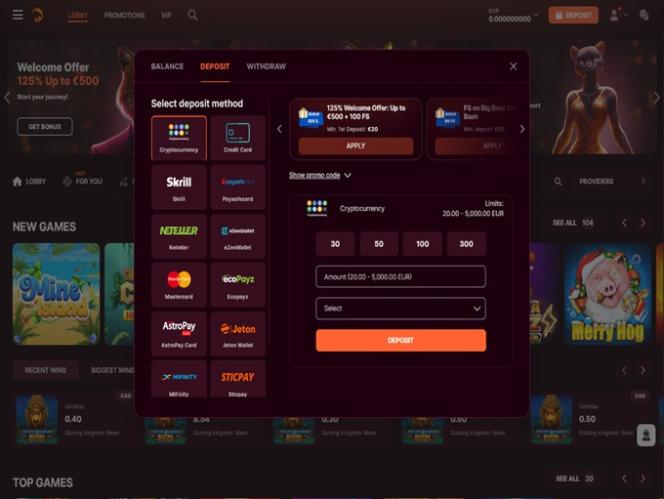 Estava tudo bem, cadastrei-me no Puma Casino para depositar US$ 20 e receber o bônus de inscrição. Depois, coloquei o valor mínimo novamente para receber o bônus de recarga. Joguei principalmente nos caça-níqueis Elvis Frog and Wolf e consegui ganhar US$ 50 após cumprir o requisito de aposta. A verificação demorou alguns dias e precisei pedir suporte, mas recebi o pagamento em criptomoedas em cerca de 3 dias.