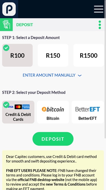 O sistema bancário do Punt Casino é bastante decente, com o site aceitando depósitos e saques via cartão de crédito, carteira eletrônica ou Bitcoin. Recomendo o Bitcoin, pois é a maneira mais rápida de receber seus fundos. Há um período de espera de 24 horas para os ganhos serem creditados, e existem diferentes limites de pagamento dependendo da sua categoria VIP.