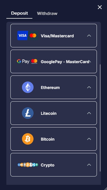 O cassino não garante a disponibilidade de nenhum método de depósito ou pagamento específico.