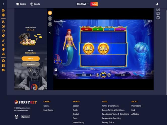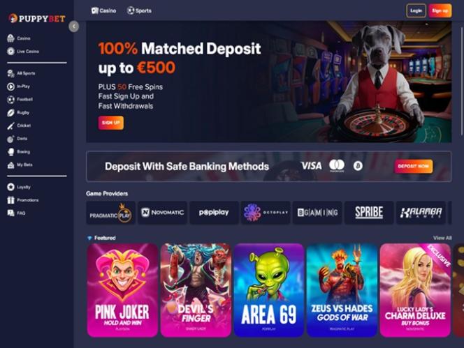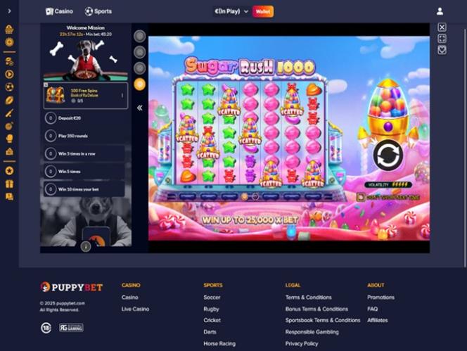 PuppyBet é um site de jogos de azar moderno que atende tanto jogadores de cassino quanto apostadores esportivos. A marca oferece uma ampla seleção de opções de jogos, incluindo caça-níqueis online, jogos com crupiê ao vivo, jogos de mesa e jogos de crash, além de diversas opções de apostas esportivas. Os jogadores terão o prazer de aproveitar várias promoções e bônus, bem como utilizar criptomoedas para depositar e sacar fundos usando métodos modernos como Bitcoin.