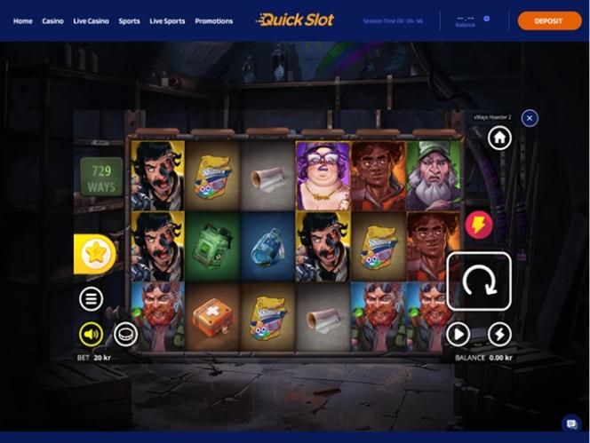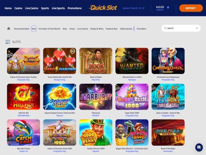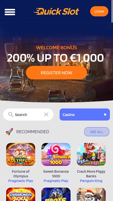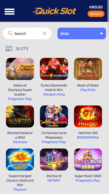 Embora à primeira vista pareça simples e minimalista, o QuickSlot possui uma plataforma de cassino totalmente funcional com um fundo claro e miniaturas de jogos com bordas arredondadas. O processo de cadastro guiado leva apenas alguns instantes, permitindo que você experimente alguns dos jogos de cassino disponíveis em seguida.
