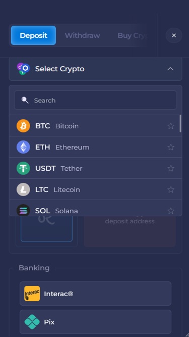 Logo de cara, o site te recebe com um tema escuro e um layout moderno e fácil de navegar. No canto superior esquerdo, você pode alternar rapidamente entre cassino e apostas esportivas, permitindo que você passe de uma para a outra sem problemas.
