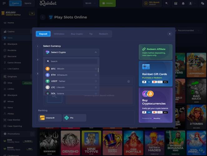 A Rainbet é um cassino online que aceita criptomoedas e opera sob licença de Anjou. Ela oferece não apenas uma seleção diversificada de jogos de cassino, mas também uma infinidade de esportes para apostar!