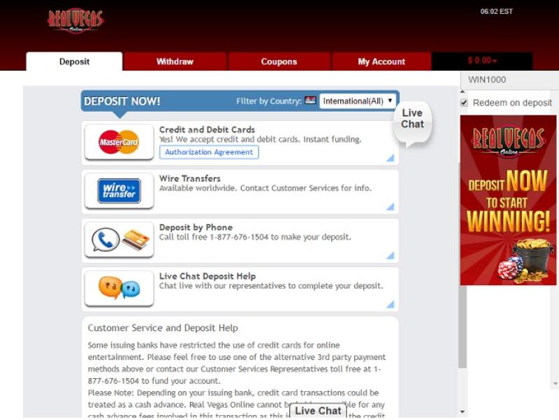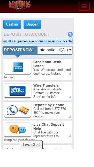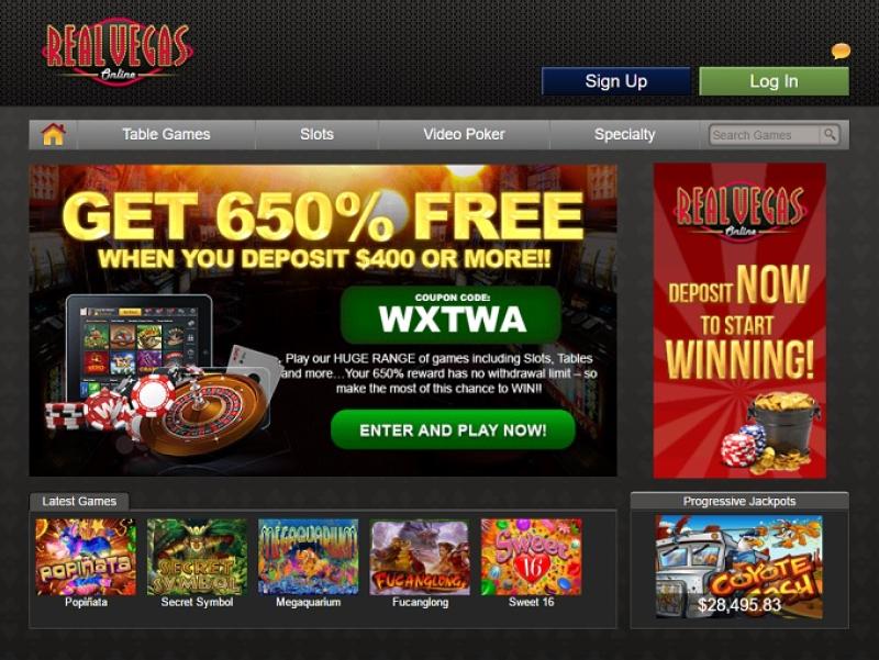 O Real Vegas Online é um cassino online que oferece seus serviços de apostas principalmente para os Estados Unidos. O cassino oferece uma variedade de jogos da RTG, assim como muitos outros sites que aceitam jogadores dos EUA, mas infelizmente possui um longo histórico de atrasos e não pagamento de ganhos, o que faz do Real Vegas Online um site no qual não recomendamos que os jogadores façam depósitos.Informações do cassino