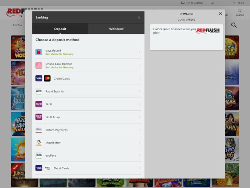 Entrei recentemente porque, ao entrar no site, uma garota muito bonita te encontra na janela promocional :) Eu me casaria com aquela loira de vestido vermelho :) Mas, apesar das Barbie Girls, qual cassino merece atenção? Bons bônus de boas-vindas e eu confio neles porque são cassinos irmãos do Royal Vegas. No Royal Vegas, ganhei com bônus sem depósito e recebi meus ganhos sem problemas. Então, acho que o Red Flush tem a mesma cultura de negócios. Aproveitei o bônus de primeiro depósito deles, mas não tive sorte o suficiente e perdi depois de um bom tempo jogando. Também adoro o programa de fidelidade porque você pode combinar pontos de outros cassinos irmãos. Então, se você fizer um depósito em todos eles, terá o valor necessário para resgatá-los em dinheiro.