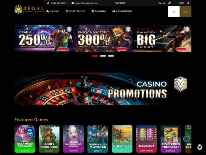 O Regal Casino é um cassino online e operador de apostas esportivas que, no momento da nossa visita, operava sem licença de jogos. Esta marca tem jogadores dos Estados Unidos como seus principais clientes; no entanto, jogadores de outros países também são convidados a participar e podem contar com um bom serviço de atendimento ao cliente, diversas opções de pagamento, bônus de cassino e uma biblioteca de jogos bem equipada com os melhores jogos de cassino.