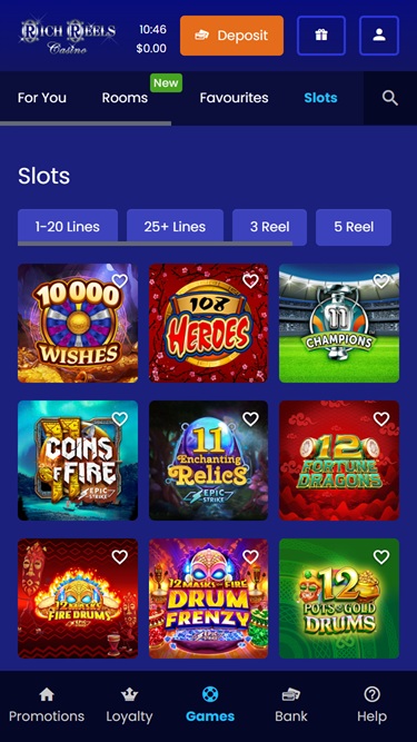 Abaixo está uma lista das promoções atualmente oferecidas no Rich Reels Casino.