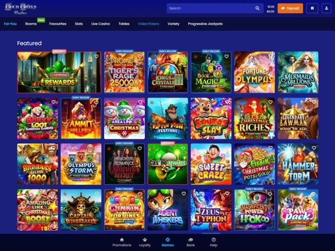O Rich Reels Casino é um site muito profissional, orientado e concentrado apenas em um provedor, que é a Microgaming. Eles colocam muito esforço neste cliente e você pode jogar em modo muito rápido todos os jogos, incluindo todos os slots. O site também oferece bons bônus, incluindo bônus de primeiro depósito, além de promoções regulares, boas e com suporte amigável.