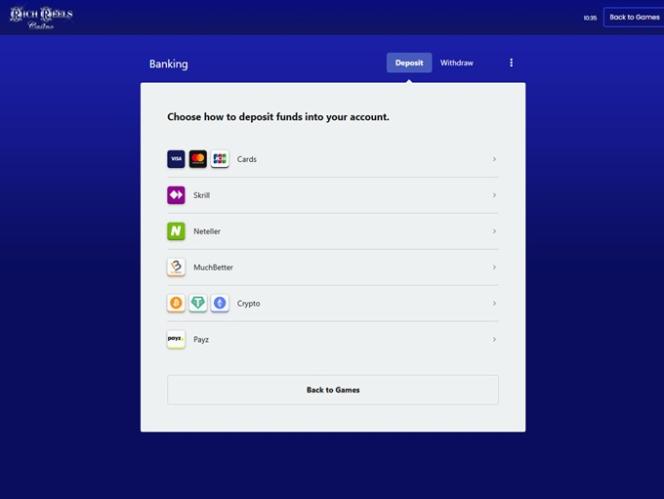 O Rich Reels tem um ótimo pacote de boas-vindas, que corresponde aos seus 3 primeiros depósitos em 100%, 50% e 30%, respectivamente, e você pode ganhar $/£/€ 600 com eles. O melhor que eu sempre gosto são os requisitos de apostas mais baixos (quero dizer, apenas cassinos Microgaming). Eles administram muitos cassinos, então é possível ter apostas baixas e ainda lucrar (todos nós sabemos como os cassinos ganham dinheiro). A única experiência melhor com este também: fiz vários depósitos (300 euros no total e consegui sacar 750 euros). O dinheiro chegou depois de 2 dias na minha conta Neteller. Atendimento ao cliente prestativo e amigável, jogos fantásticos e saques rápidos.